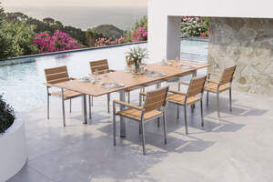OUTFLEXX Falun Garten-Essgruppe mit 6 Sesseln, Edelstahl/Teak, 200/300 x 100 cm stapelbar, FSC®-zertifiziertes Produkt