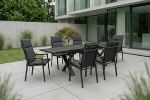 KETTLER BasicPlus Pro Garten-Essgruppe, anthrazit, Alu/Spraystone/Polyester, 180/280x100cm, 6 Stapelsessel, inkl. Auflagen