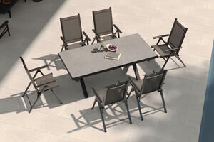 KETTLER Exklusivmodell BasicPlus 2026 Garten-Essgruppe, anthrazit/schwarz, Alu/Textilene/Keramik, ausziehbare Tischplatte 200/260 x 100 cm, 6 Klappstühle