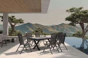 KETTLER BasicPlus Pro Garten-Essgruppe, anthrazit/schwarz, Alu/Textilene/Steinimitat, Tisch 200/260 x 100 cm, 6 Klappstühle, ausziehbar