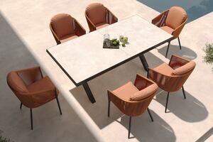 OUTFLEXX Tavio Garten-Essgruppe, schwarz/orange, Alu/Rope-Geflecht, Tisch 200/260 x 100 cm, 6 Diningsessel, ausziehbar
