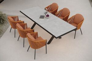 OUTFLEXX Tavio Garten-Essgruppe, schwarz/orange, Alu/Rope-Geflecht, ausziehbare Tischplatte 200/260 x 100 cm, 6 Diningsessel