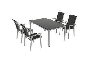 KETTLER Exklusivmodell BasicPlus 2026 Garten-Essgruppe, silber/anthrazit, Alu/Textilene, Tischplatte 160 x 95 cm, 4 Stapelstühle