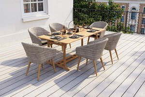 OUTFLEXX Kota Garten-Essgruppe, grau/natur, Akazie/Polyrattan/Alu, Ausziehbar, 180/240 x 100 cm Tisch, 6 Sessel, FSC®-zertifiziertes Produkt