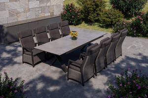 HARTMAN Nova Garten-Essgruppe, anthrazit/grau, Alu/Polyrattan/Glaskeramik, 220/280 x 100 cm, ausziehbarer Tisch, verstellbare Sessel