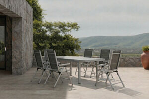 KETTLER BasicPlus Pro Garten-Essgruppe, silber/anthrazit, Alu/Textilene, 180/240 x 100 cm, 6 Klappstühle