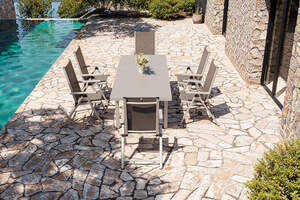 KETTLER Exklusivmodell BasicPlus 2026 Garten-Essgruppe, silber/anthrazit, Alu/Textilene, 180/240 x 100 cm, 6 Klappstühle