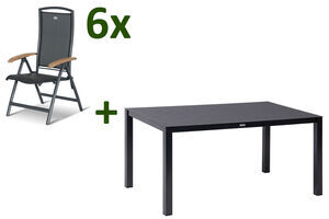 HARTMAN Raffaelo Garten-Essgruppe, xerix/anthrazit, Alu/Spraystone/Teak, 160x95 cm, 6 Klappstühle, Teak Armlehnen