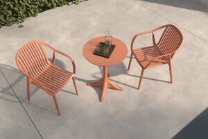 VILLANA Pico Curve Balkon-Set, ziegelrot, Kunststoff, Tisch ø70 cm und 2 Stapelsessel 56 x 59 x 83 cm, UV- und wetterfest